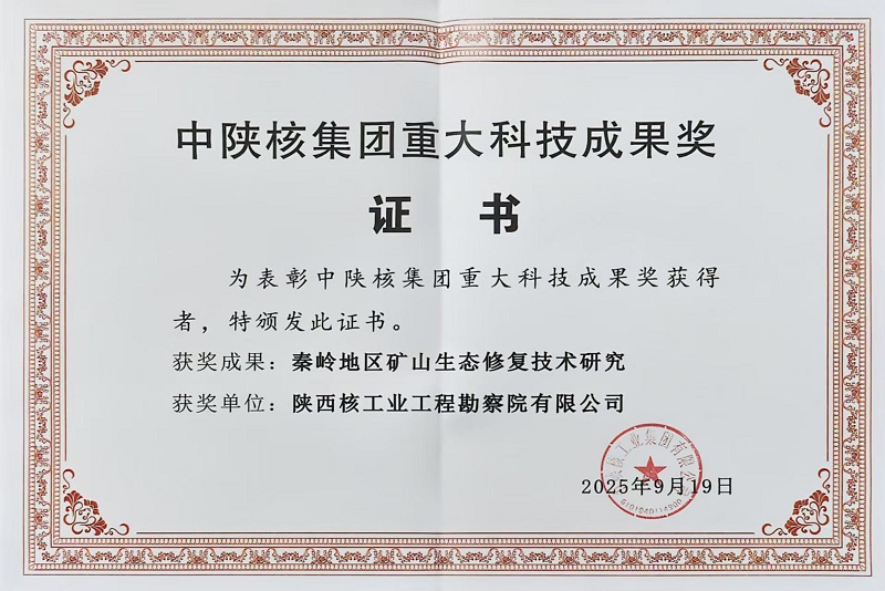 近日,中陕核工业集团第六届科技大会在西安隆重召开。陕核工勘完成的《秦岭地区矿山生态修复技术研究》项目荣获重大科技成果奖。